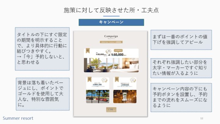 • 綺麗な海の写真で興味を惹き、キャンペーン内容を簡潔に記載したファーストビューで読み進めたいと思わせるようにした